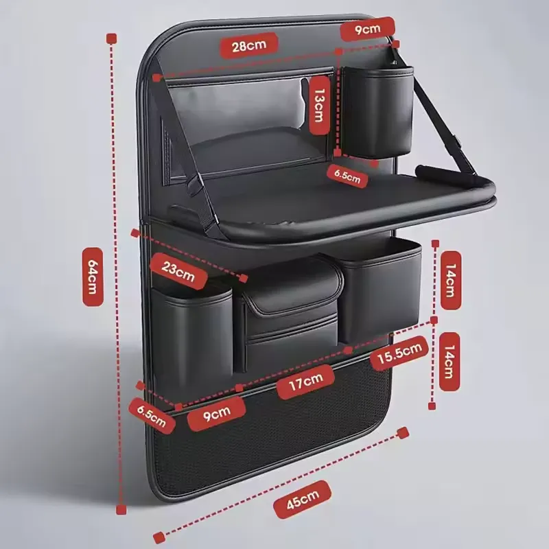 ⦁ Functions: Multi-pocket storage, tablet tray, anti-kick protection